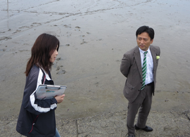 最後に、七浦地区振興会や鹿島市の皆さんと意見交換を行いました。樋口久俊市長から、干潟体験の受入可能な人数など、道の駅鹿島の課題と、今後の整備計画についてご説明いただきました。最大の魅力である干潟を活かすために干潟交流館を新設したり、キャンピングカーのためのスペースを用意したりと、様々な計画をされているそうです。