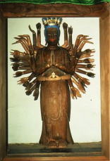 県指定(美術工芸品の部)07 最終更新日:2020年6月22日 佐賀県重要文化財(美術工芸品)の部 佐賀県重要文化財 五鈷四天王鈴(ごこしてんのうれい) 平成5年3月31日指定 佐賀市城内一丁目15-23(県立博物館) 工芸品 本鈴は鈴身に四天王を陽鋳する仏像鈴である。材質は真鍮で、鋳造鏨彫り仕上げである。法量は総高22.8cm、口径6.5cm。 このような形式の四天王鈴は中唐から晩唐にかけて製作されたものが多いが、本鈴も中国唐時代の9世紀頃に製作されたものと推定される。 佐賀県重要文化財 紺糸威桶側二枚胴具足(こんいとおどしおけがわにまいどうぐそく) 平成6年3月31日指定 佐賀市城内一丁目15-23(県立博物館) 工芸品 本領は、伝統的な甲冑の様式に代わって奇想天外な意匠、例えば烏帽子、猿、牛、鯰、栄螺等の形象冑が盛行した時代の、いわゆる甲冑史第3期(室町時代末期~江戸時代末期)に属する当世具足と称するものである。特徴は、実戦の体験によって考案されたもので、戦闘がスピード化されたことから軽量簡素で機敏な動作に適し、しかも人体の数多くの重要な箇所を充分に防御し、それに大量生産できる点にあった。 本領は、戦国武将・竜造寺隆信(1529~1584)の所用とされており、隆信を祭る島原の沖畷手にある二本松神社の宝物であった。 佐賀県重要文化財 木造薬師如来坐像・木造大日如来坐像・木造十一面観音菩薩坐像(もくぞうやくしにょらいざぞう・もくぞうだいにちにょらいざぞう・もくぞうじゅういちめんかんのんぼさつざぞう) 平成6年3月31日指定 小城市小城町池上門前 三岳寺 彫刻 三像とも楠を用いた寄木造りで、玉眼を嵌入し、漆箔仕上げとする。 三岳寺に残される古文書「僧隆海田地寄進状」などには、薬師如来、十一面観音、大日如来の三像について、古像が焼失し、そのため僧隆海が呼びかけ、千葉氏が中心となって鎌倉時代永仁2年(1294)に再興したと記されている。この年の1月には千葉氏の当主である宗胤が没していることから千葉氏代々の菩提を弔うための造像であったことが窺える。 像高 薬師如来(98.0cm) 大日如来(101.2cm) 十一面観世音菩薩(96.0cm)。 佐賀県重要文化財 木造千手観音菩薩立像(もくぞうせんじゅかんのんぼさつりゅうぞう) 平成6年3月31日指定 唐津市夕日字舟石 夕日観音堂 彫刻 本像は榧材を用いた一木造、内刳りは全くない。右の鎖骨のあたりには木芯が認められる。本来は十一面、四十二臂の像であったと思われるが、現在では合掌手以外は後補にかわり四十臂となる。 本像は三田川町東妙寺の木造聖観音立像とならんで県内で最も古い木彫仏であり、佐賀県、とくに松浦地方の平安文化を伝える数少ない資料として貴重である。 像高 173.0cm。 佐賀県重要文化財 紙本著色竜造寺隆信像(しほんちゃくしょくりゅうぞうじたかのぶぞう) 平成7年5月26日指定 佐賀市城内一丁目15-23(県立博物館) 絵画 竜造寺隆信(1529~1584)は、現在の佐賀城跡付近を根拠地とした豪族竜造寺一族のうち、分家水ヶ江竜造寺氏の周家の嫡子として生まれた。その勢いは一時、肥前のみならず、筑前、筑後、肥後、豊前にまで及ぶこともあったが、天正12年(1584)、島原において有馬・島津の連合軍と戦い、戦死した。 本図は紙本着色の掛幅装で、本紙の法量はタテ75.6cm、ヨコ48.4cmである。隆信は、烏帽子に大紋(紋所不明、素襖の可能性もある)で、袈裟を懸けた半僧半俗の肖像として描かれている。本図の添状及び宗龍寺の「御触達書上帳」では、本図は直茂が宗龍寺に寄付したものであると伝えており、製作時期については天正16年(1588)の宗龍寺創建以降、早ければ七回忌法要まで、遅くとも17世紀初頭までの間と推定される。 佐賀県重要文化財 木造聖観音菩薩坐像(もくぞうしょうかんのんぼさつざぞう) 平成8年5月29日指定 東松浦郡玄海町普恩寺 普恩寺 彫刻 檜材を用いた寄木造りの像で、右手第1指と4指を稔じ、左手に蓮華を持つ。本像は体内の銘文から、暦応5年(1342)に源廣など松浦党の人々を檀那とし、仏師湛勝によりつくられたことが知られる。 総高(宝冠含む。) 66.5cm 像高 57.0cm。 佐賀県重要文化財 紺紙金字法華経(こんしきんじほけきょう)7巻 平成8年5月29日指定 佐賀市本庄町大字本庄 高伝寺 書跡・典籍 巻子装、天地約24.5cm。 表紙には宝相華唐草文、見返し絵には釈迦説法図や経典内容が金銀泥で描かれている。経文は、銀界線を引き、一行17字詰めの金字で書く。 謹直な描線でモティフの形態を精密に描く画風は12世紀第3四半世紀頃の制作と考えられる。また、大鎧を身に付けた武者など時代性を反映した新しい図像もみられる。 クイックメニュー