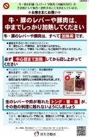 - 販売者は,直接一般消費者に販売することを目的に,牛の肝臓又は豚の食肉を使用して,食品を製造,加工又は調理する場合は,その食品の製造,加工又は調理の工程中において,牛の肝臓又は豚の食肉の中心部の温度を63℃で30 分間以上加熱するか,又はこれと同等以上の殺菌効果を有する方法で加熱殺菌しなければならない。ただし,一般消費者が飲食に供する際に加熱することを前提として当該食品を販売する場合(以下9において「加熱を前提として販売する場合」という。)又は食肉製品を販売する場合については,この限りでない。加熱を前提として販売する場合は,その販売者は,一般消費者が飲食に供する際に当該食品の中心部まで十分な加熱を要する等の必要な情報を一般消費者に提供しなければならない。