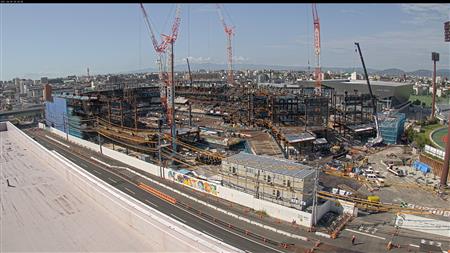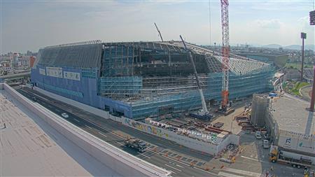 2021年9月 メインアリーナ・サブアリーナ鉄骨工事、外部足場設置