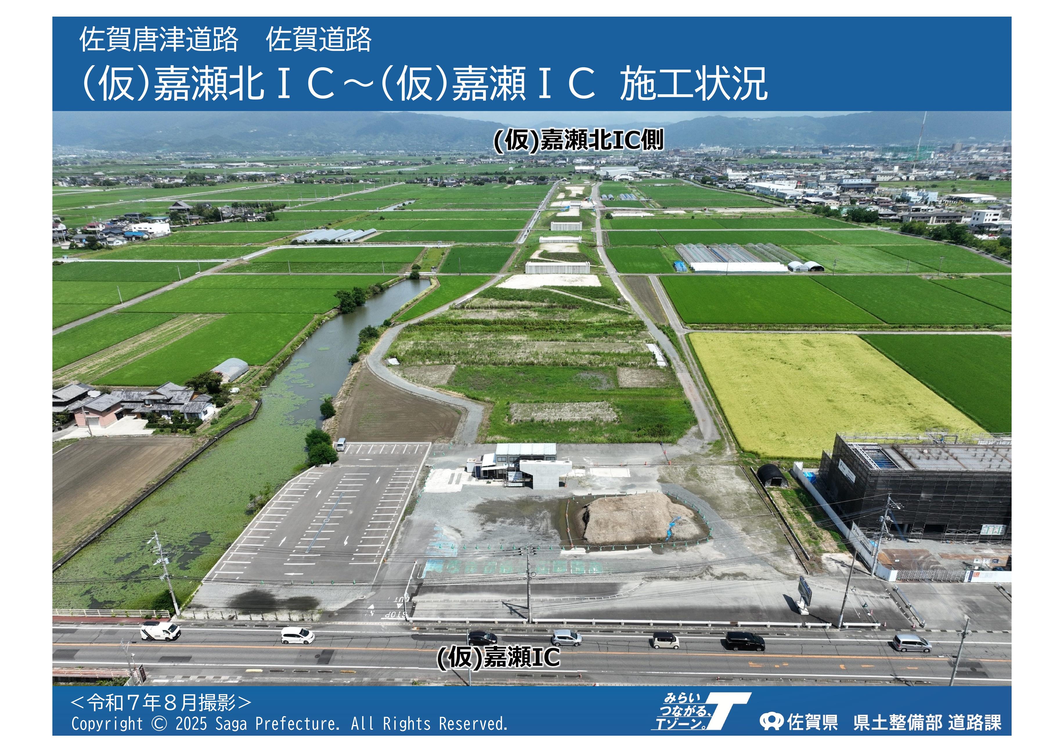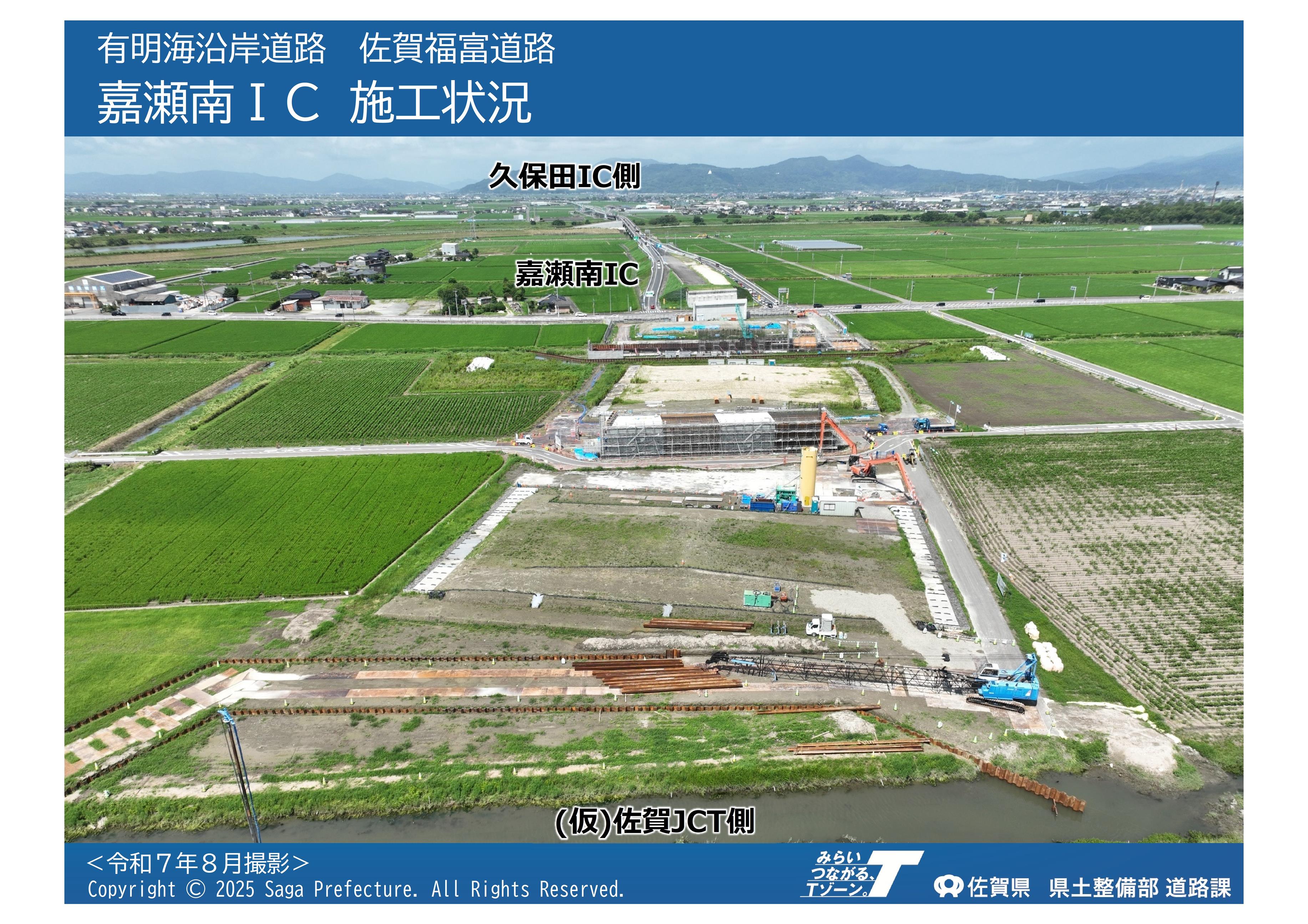 これまでに、嘉瀬南IC~福富ICまで区間(L=約10km)が暫定2車線で開通済みです。