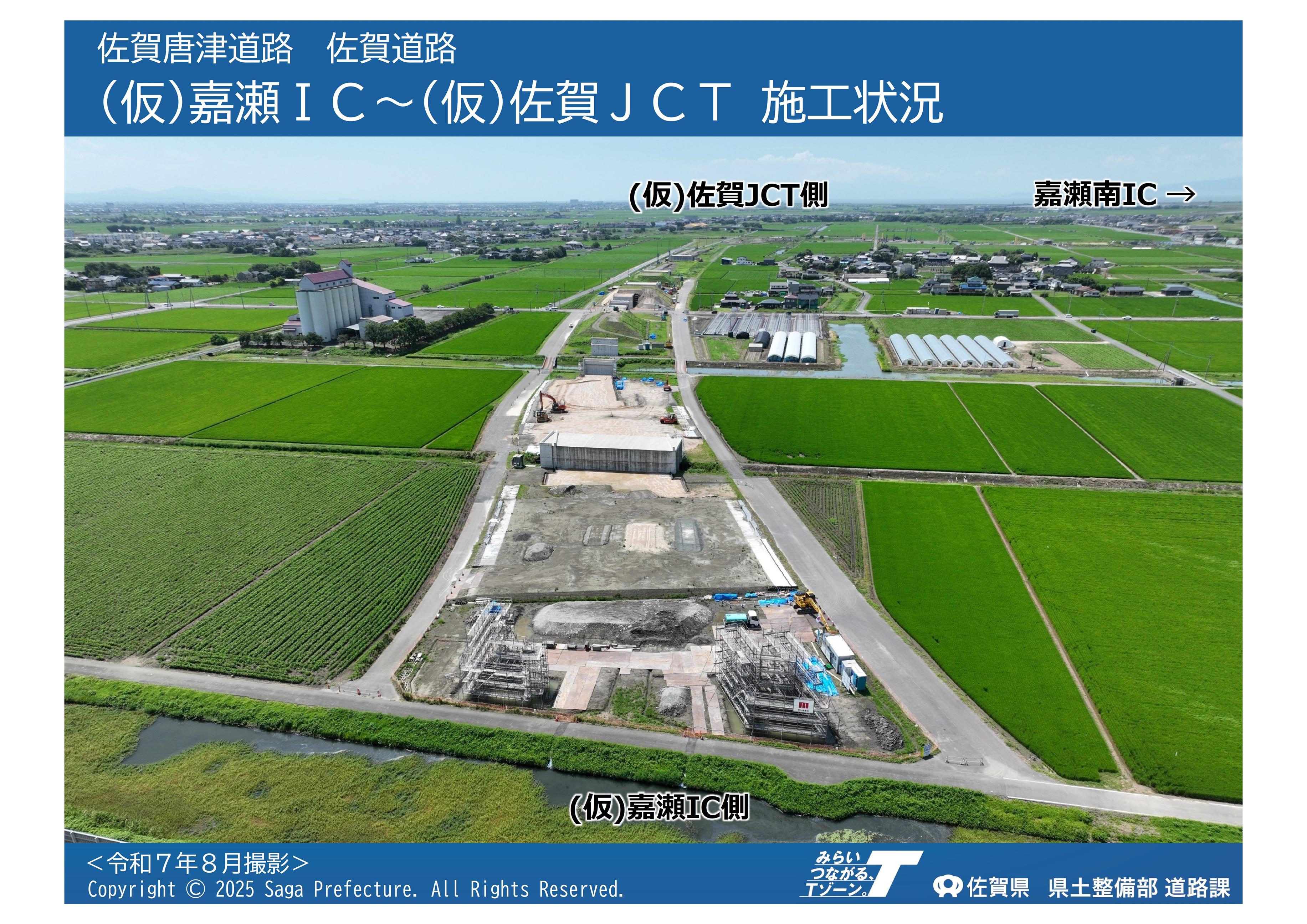 このうち佐賀県では、佐賀唐津道路と有明海沿岸道路が接続する(仮称)佐賀ジャンクションから国道34号までの区間(L=約4.2km)の佐賀道路の整備を行っています。