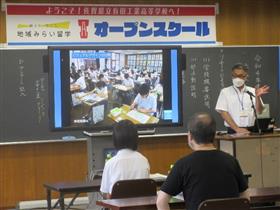 令和4年7月30日(土曜日)・31日(日曜日)は、夏休み期間を利用して、第1回オープンスクールを開催しました。1日目は、県外から参加した中学生と保護者の方に、学校概要や学科の説明を行い、校舎見学や学科の授業を体験していただきました。2日目は、町の住まいを案内しました。