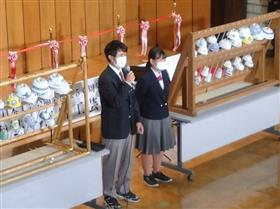 開会式には、佐賀県の山口知事や有田町の松尾町長をはじめ、重要無形文化財(人間国宝)である今泉今右衛門さんや井上萬二さんなど、名だたる方々がご臨席され、生徒達は「とても緊張した」と話していました。演奏した曲は、スタジオジブリの「君をのせて」「カントリーロード」「もののけ姫」の3曲で、碗琴の心地よい響きに会場は魅了されました。